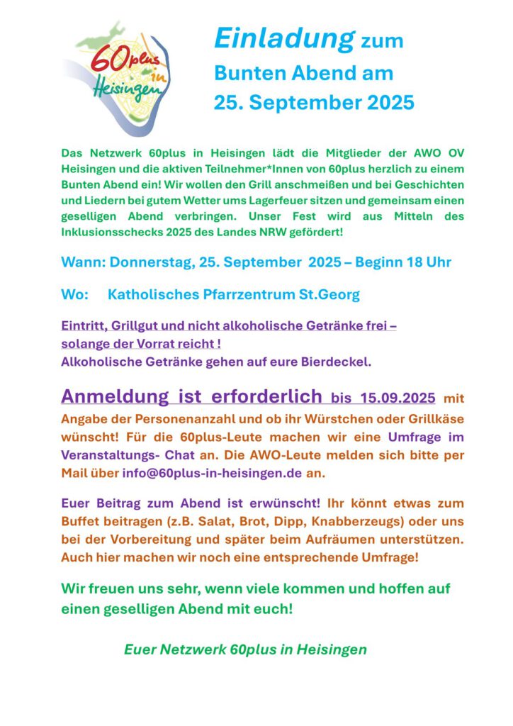 Veranstaltungen von und mit 60plus in Heisingen