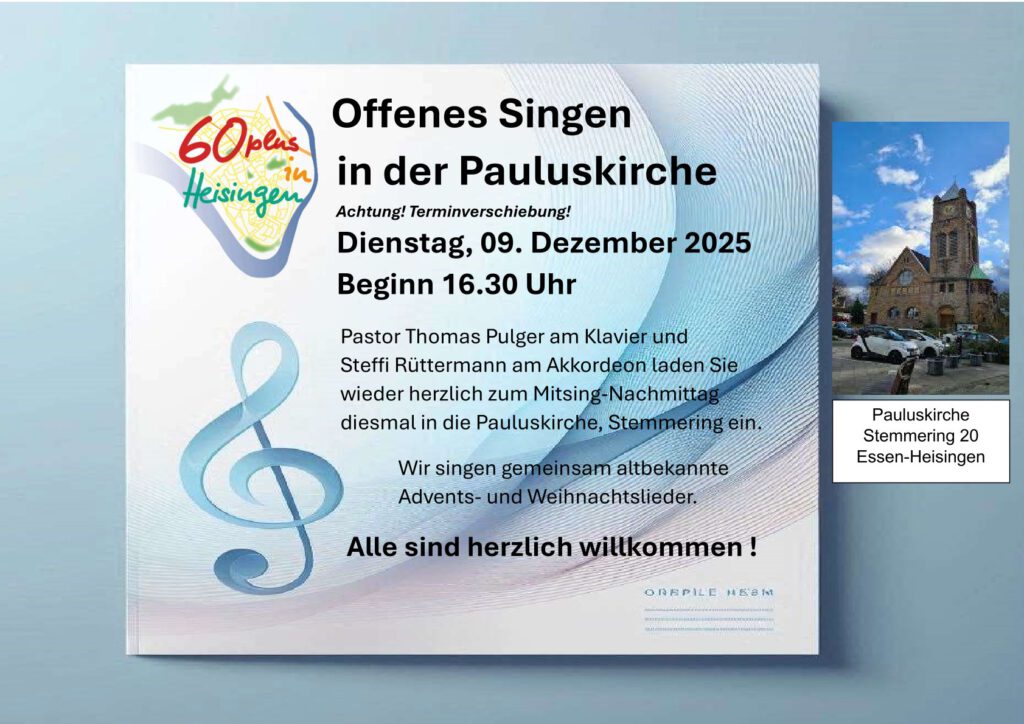 In der Vorweihnachtszeit darf das Singen von Weihnachtsliedern nicht fehlen. In diesem Jahr singen wir gemeinsam Achtung: im Paulushof – Großer Saal im Untergeschoss! .
